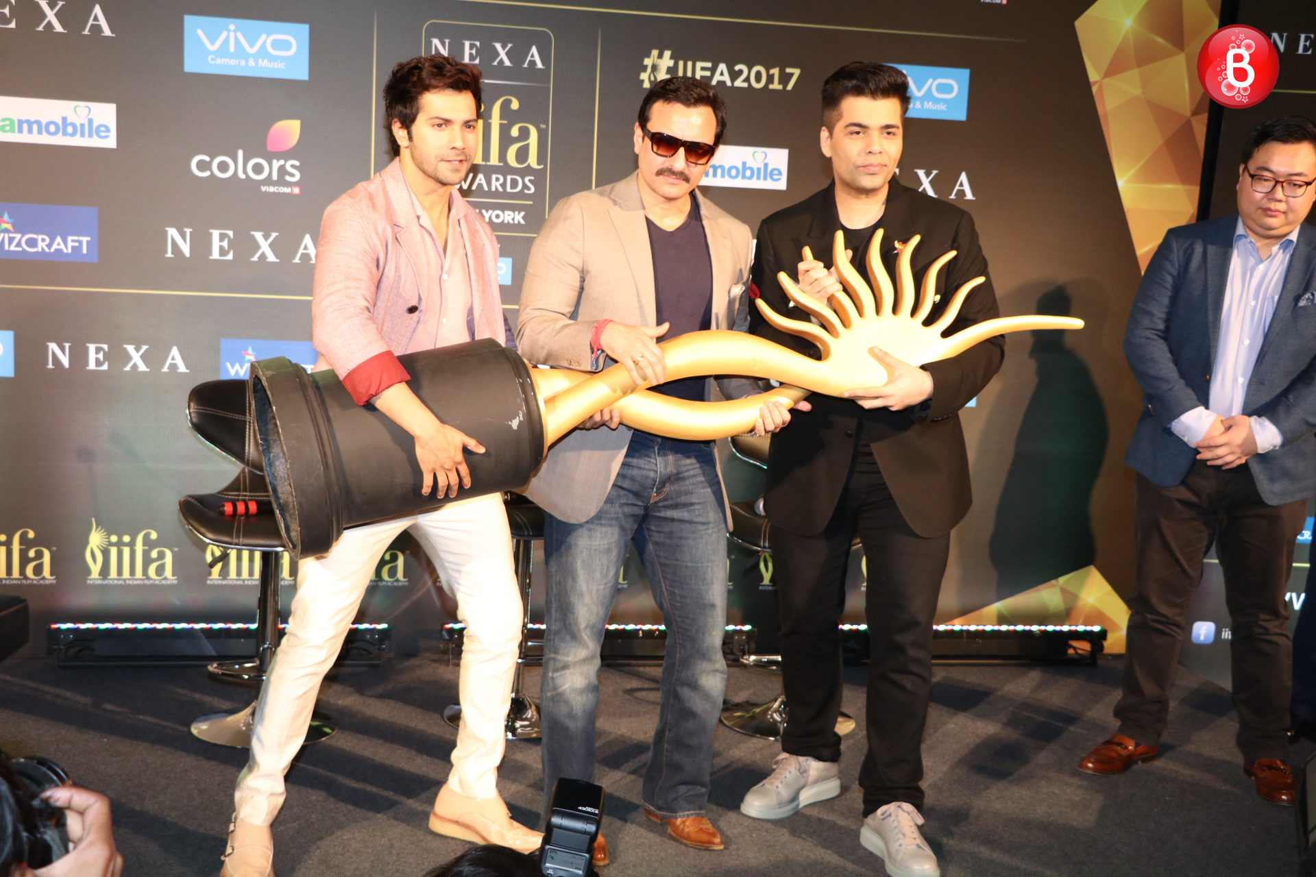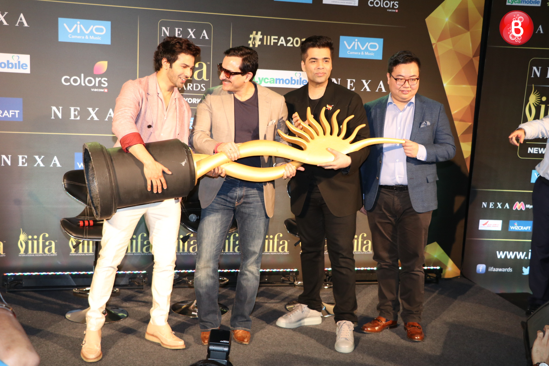 IIFA 2017 is all set to take place in New York and our Bollywood celebs are all charged up for it. Recently, a press conference was held by the organisers of IIFA which was attended by Saif Ali Khan, Varun Dhawan and Karan Johar. As per reports, Saif Ali Khan and Karan Johar are going to be the host of this year’s IIFA. All three of them are crazy and we can gauge the madness they bring along when together. The pictures shared below are a proof that Varun, Karan and Saif were in their best mood during this conference. (Also Read:Â Salman Khan to pay tribute to Reema Lagoo at IIFA Awards 2017)