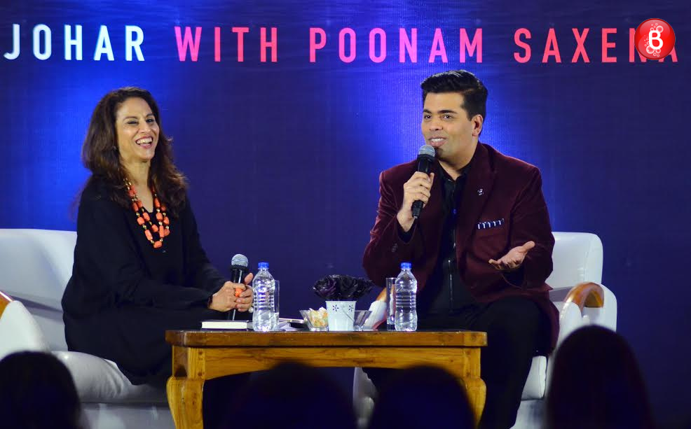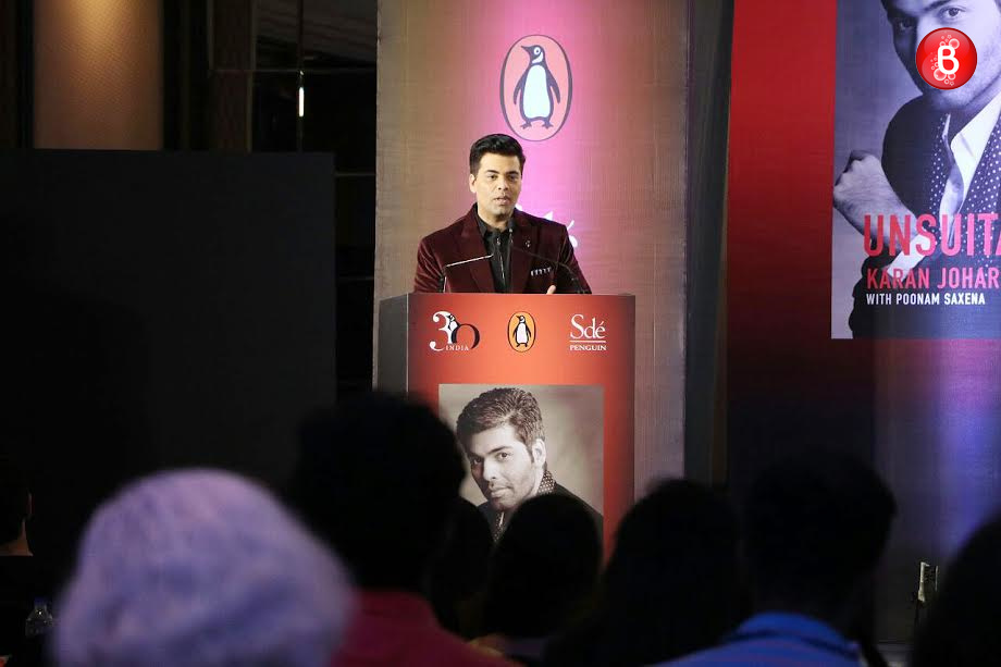 Karan Johar is snapped addressing the guests at his autobiography launch.