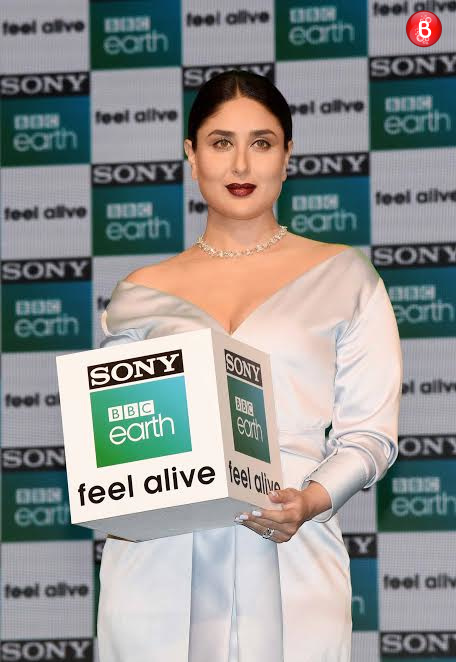 Actress Kareena Kapoor Khan attended the launch event of Sony BBC Earth yesterday. She looked dazzling in a knee-length slit gown of powder blue colour, which was a number by Nikhil Thampi. Her bold marsala lip colour, sleek ponytail and the beautiful string of pearls around her neck, perfectly completed her look. (Also Read: Look who is back on the sets, it’s the new mommy Kareena Kapoor Khan)