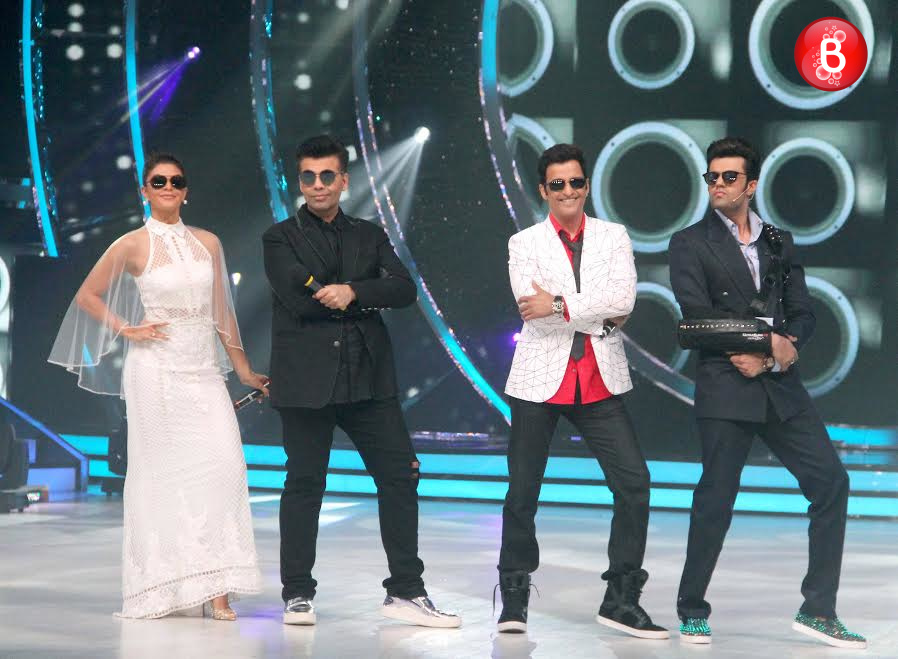 Jacqueline Fernandez, Karan Johar, Ganesh Hegde and Manish Paul don a Kala Chashma.