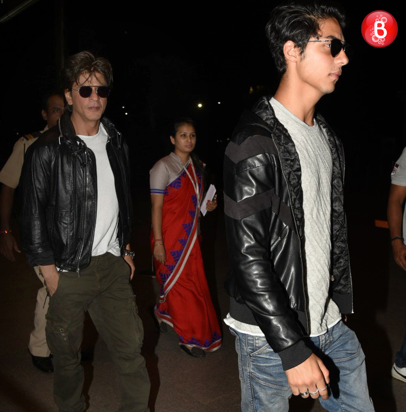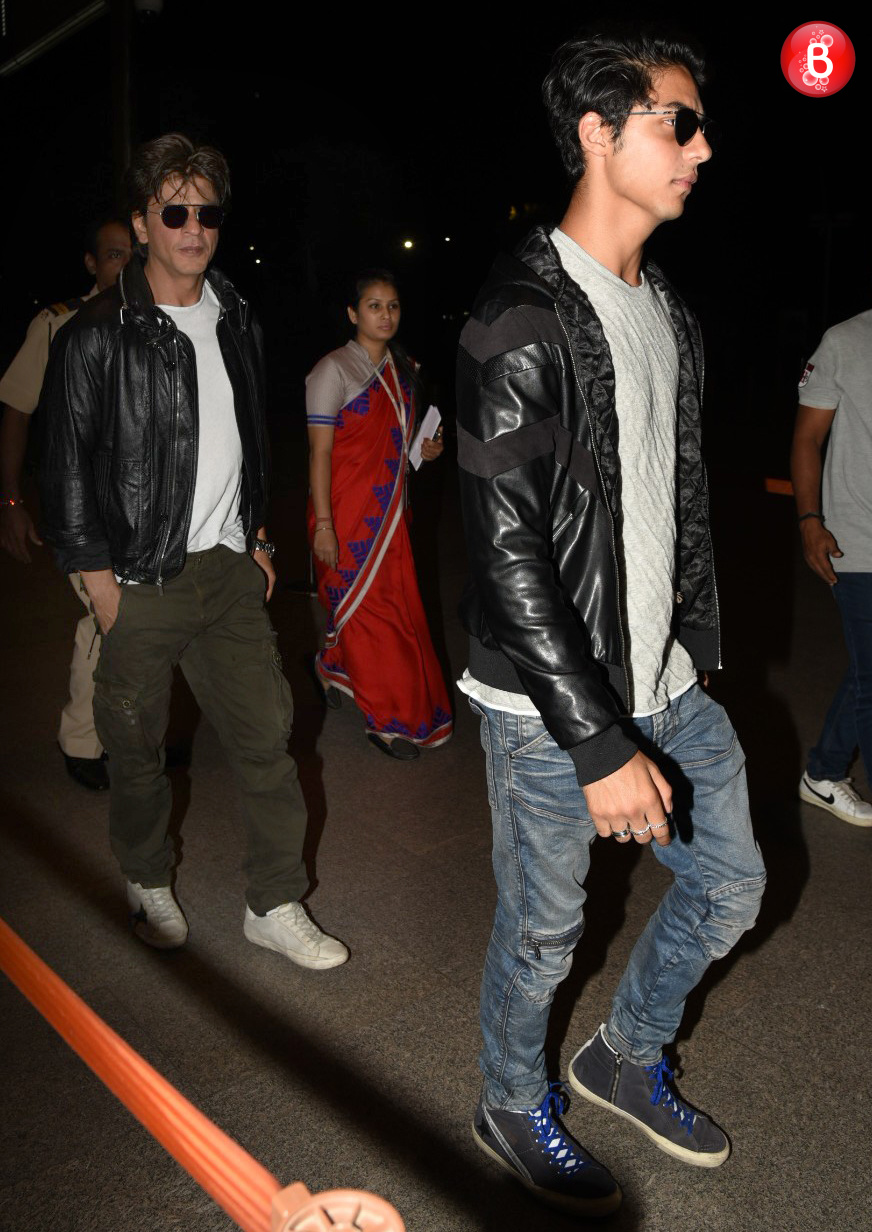 This time, the father-son duo was twinning not just with their looks, but with their attires as well. Well yes, SRK and Aryan were clicked by the shutterbugs at the airport and they were seen wearing identical black jackets, white shirts and black glares. If you keep aside their pants, everything else was a reflection of each other. (Also Read: Shah Rukh Khan pays a special visit to Dilip Kumar, at latter’s house. VIEW PICS)
