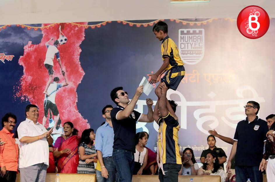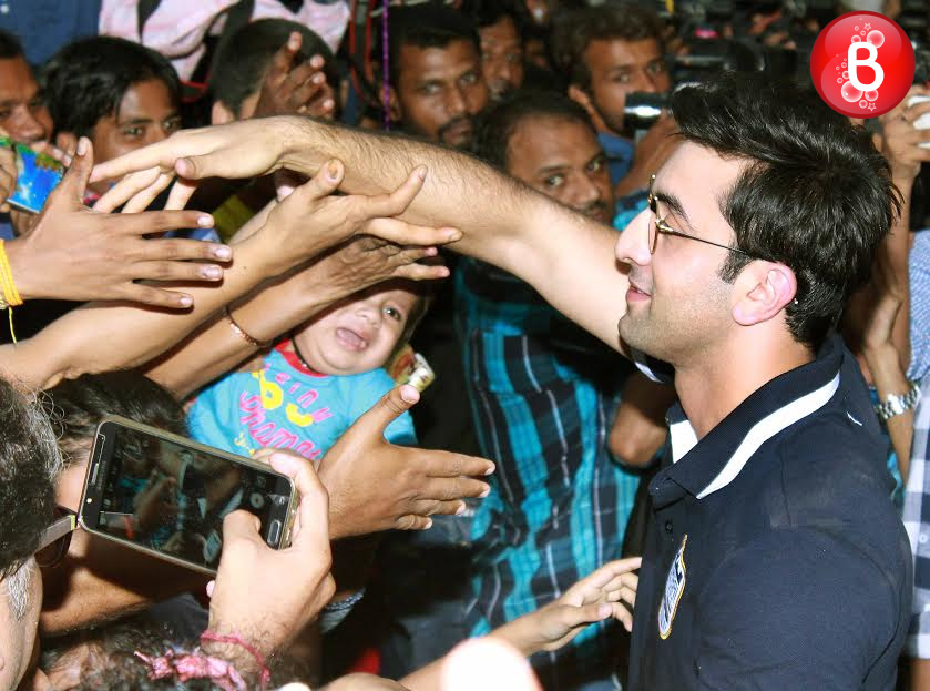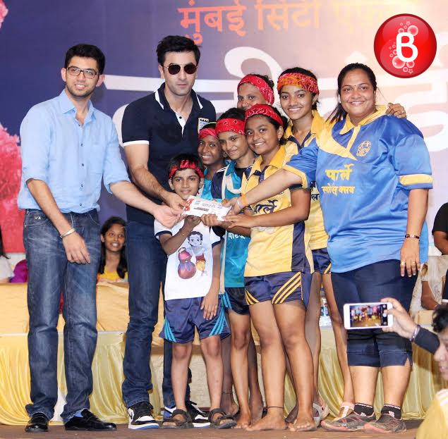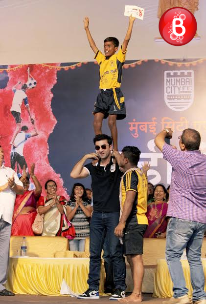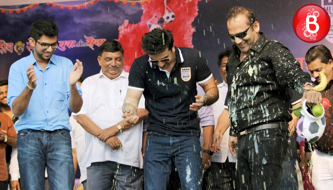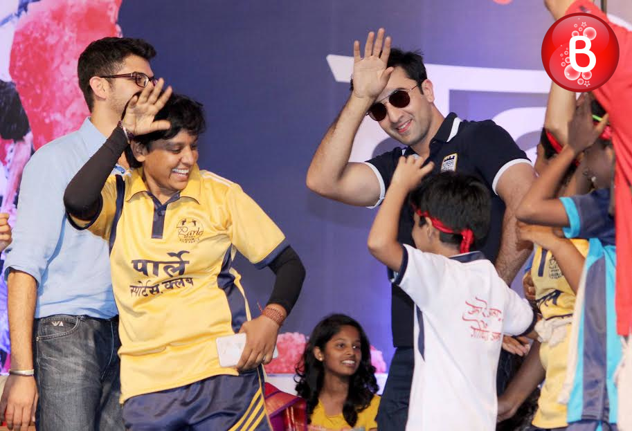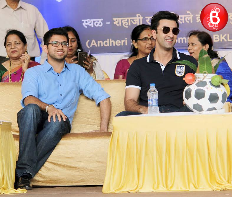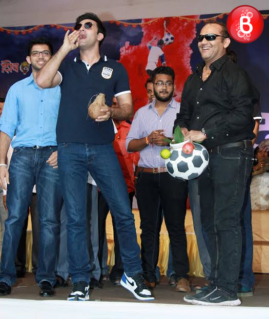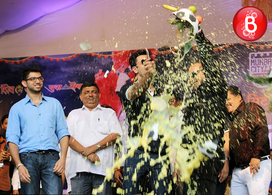 On Thursday, Bollywood’s ‘Saawariya’ Ranbir Kapoor celebrated the festival of Janmashtami with complete enthusiasm. The actor was spotted at an event held at the Andheri Sports Complex where he was accompanied by Yuva Sena Head, Aditya Thackeray. The event was a complete joyride for everyone as it witnessed Ranbir Kapoor breaking down a Dahi Handi in the shape of a football following which he danced with the kids as well. The actor even addressed the crowd and greeted some of his fans before he took a leave. With lots of happiness and fun, we bring to you some amazing pictures from this event.