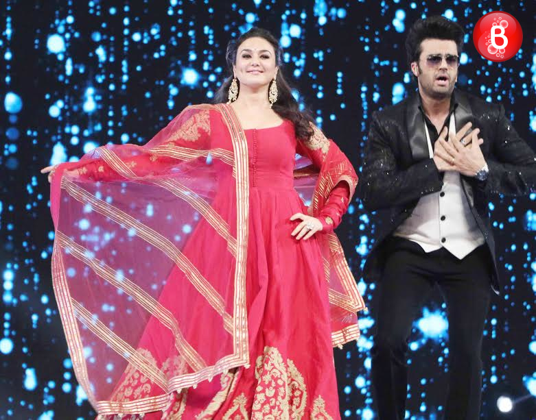 Preity Zinta and Maniesh Paul perform at Umang 2017 show.