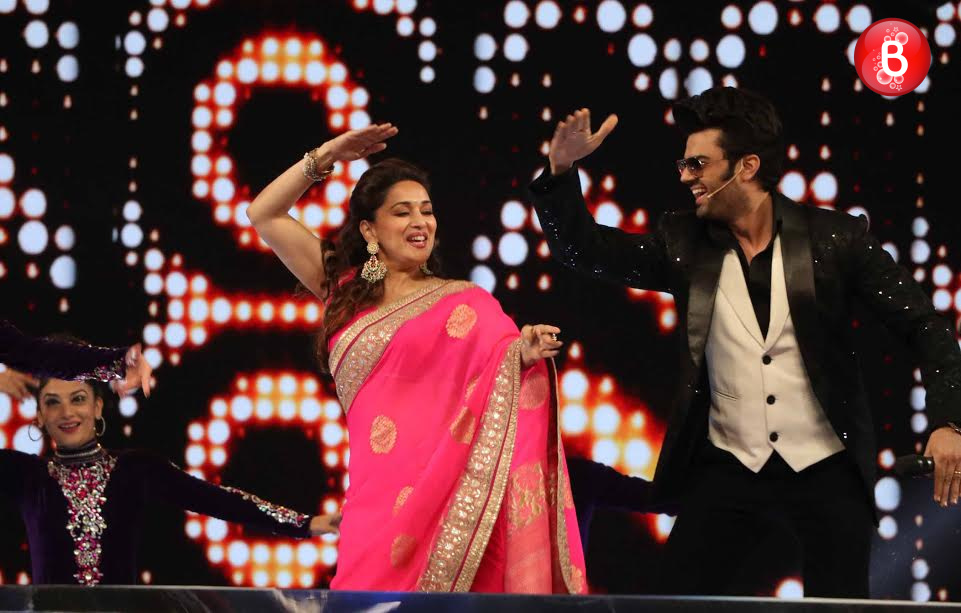 Madhuri Dixit and Maniesh Paul perform at Umang 2017 show.