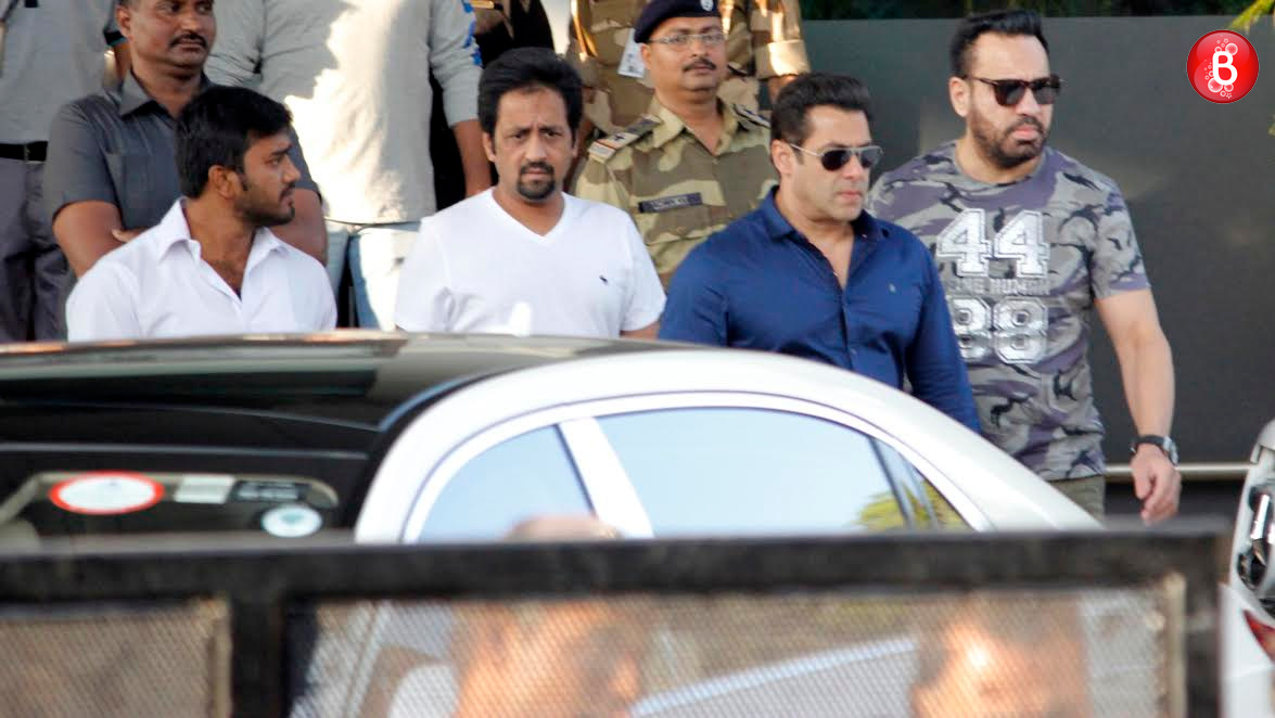 On Friday morning, superstar Salman Khan recorded his statement in the blackbuck poaching case in Jodhpur Court. The actor has denied all the charges saying that he is not guilty. According to reports, the actor gave a statement that blackbuck died of natural causes. Following the court proceedings and getting a next date for the hearing of the case, the actor returned to Mumbai on Friday evening. Our camera spotted him at the airport accompanied by his bodyguard Shera. And here we bring to you the pictures of Salman’s arrival at the airport.