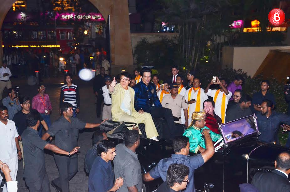 Jackie Chan and Sonu Sood arrive together at their promotional event of 'Kung Fu Yoga'.