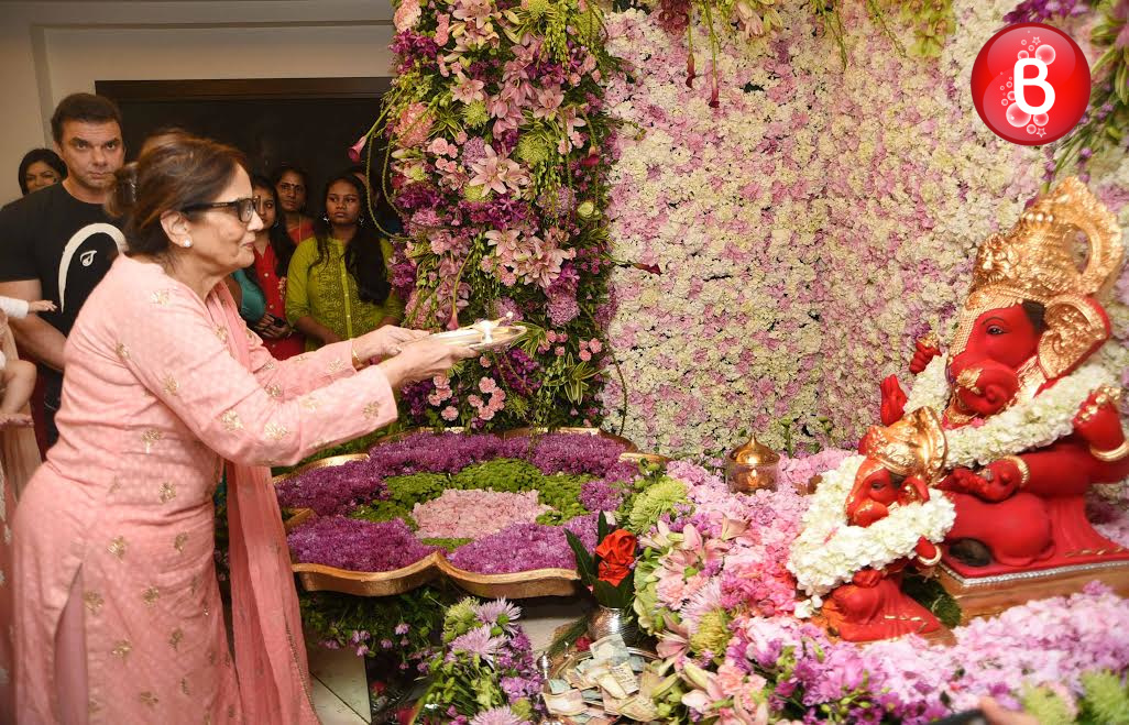 Arpita Khan Sharma doing Ganpati's aarti at Salman Khan's place.