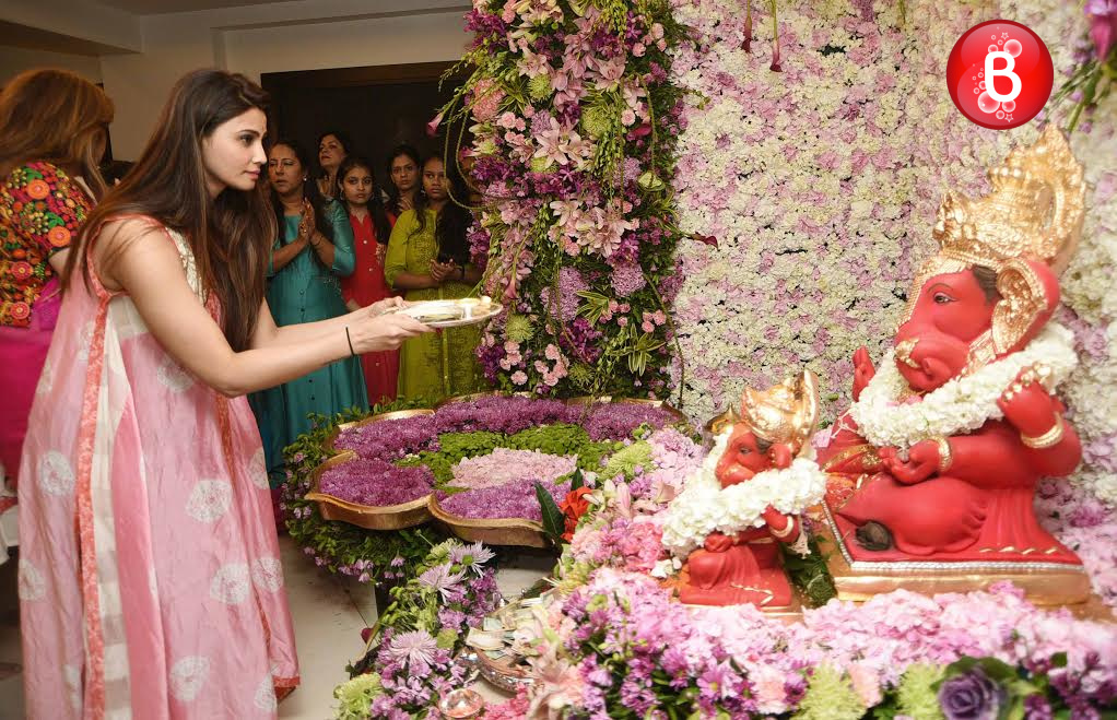 Shweta Rohira doing Ganpati's aarti at Salman Khan's place.