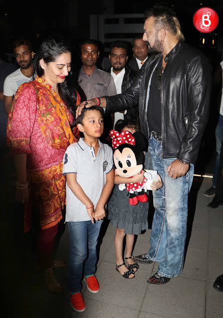 You can never get enough of a good time spent with your near and dear ones. Perhaps, the same thing applies to our very own B-Town stars as well. On Friday night, our cameraman spotted actor Sanjay Dutt on a dinner outing with his lovely wife Maanayata Dutt and kids Iqra and Shahraan. Four of them looked absolutely adorable together. And here we bring the pictures of this perfect family.