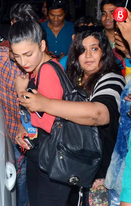Lately, actress Shruti Haasan has been in the headlines about her alleged boyfriend Michael Corsale. Though she has neither denied nor confirmed anything about it, there are reports been heard that her father Kamal Haasan too has met Michael. But, recently our camera spotted Shruti slightly in an annoyed mood. The actress was captured in Bandra when she was taking a leave and her fans and the paparazzi spotted her. Looking at the pictures, it was quite clear that she was perhaps not in a mood to get snapped. There was someone to protect her from the mob, but disturbance and anger can be seen clearly on her face. Well, we can only assume but can’t give the actual reason behind this behaviour of the actress. (Also Read: Shruti Haasan on rumours of her relationship: I just choose to ignore such talks)