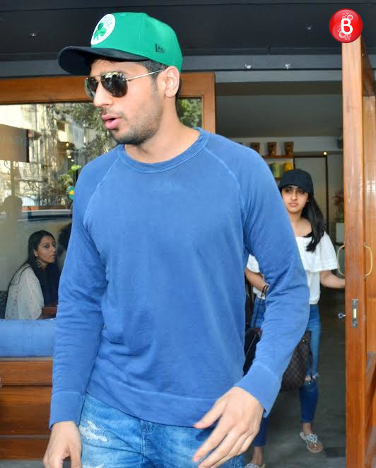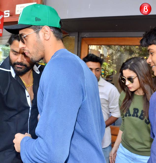 Sidharth Malhotra and Alia Bhatt spotted outside a restaurant.