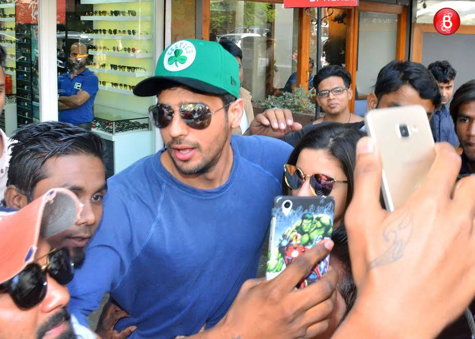 Sidharth Malhotra and Alia Bhatt get mobbed by fans outside a restaurant.
