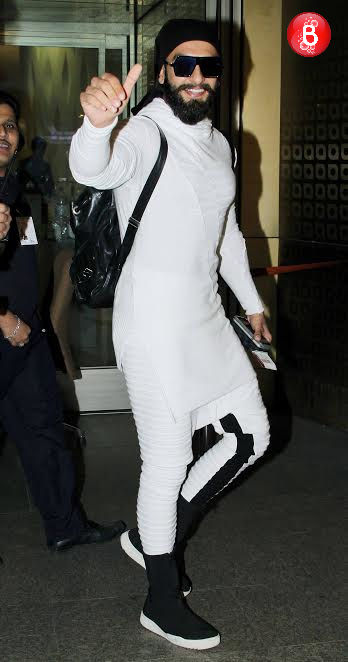 Ranveer Singh is all game when it comes to fashion; he chose an all-white outfit with black boots and black bandanna.