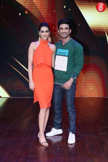 Kriti Sanon and Sushant Singh Rajput with the host of the show, Jay Bhanushali.