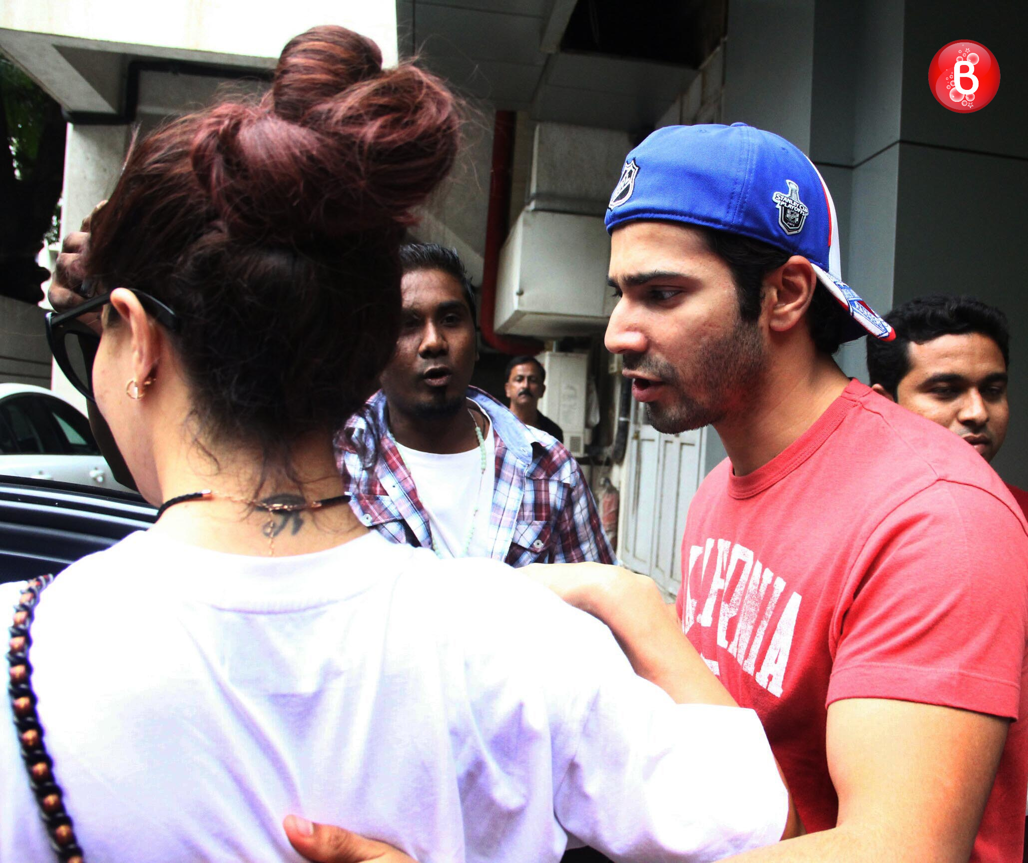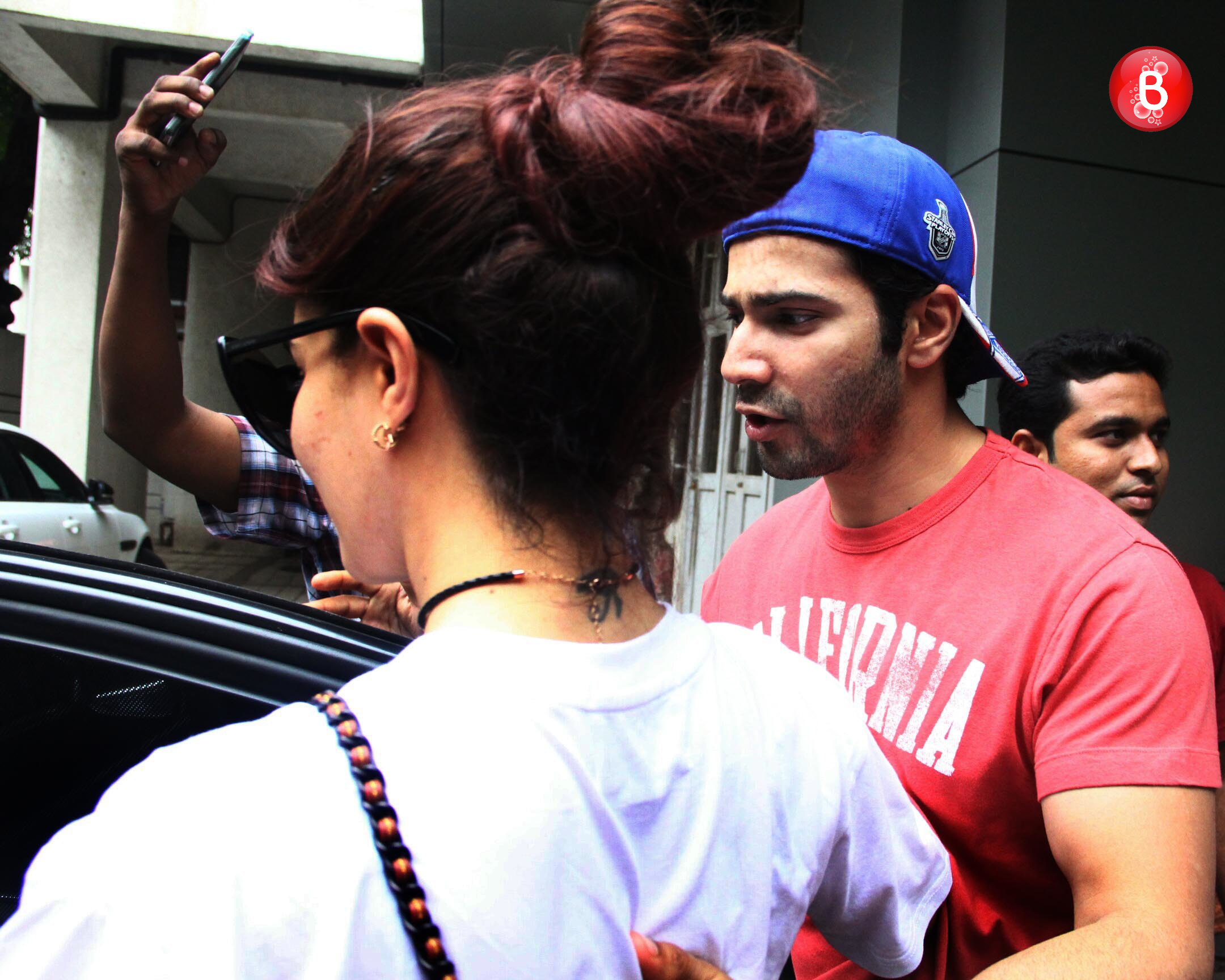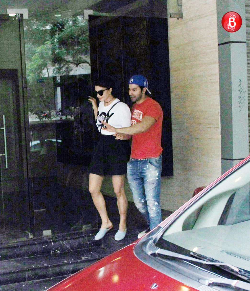 Spotted: Varun Dhawan and Jacqueline Fernandez outside Varun's office.