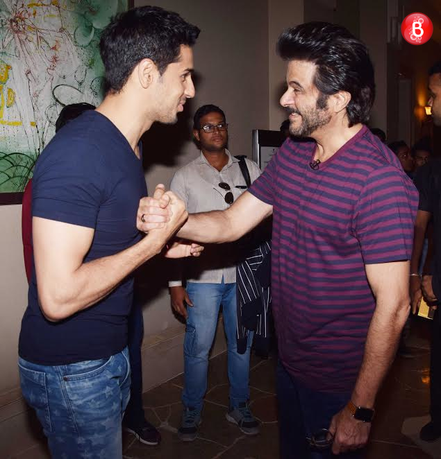 It’s nothing new that celebs bump into each other in studios while shooting for their respective films. Well, recently Anil Kapoor and Sidharth Malhotra bumped into each other at a hotel in suburban Mumbai. Anil and Sidharth were there to promote their respective films ‘Mubarakan’ and ‘A Gentleman’. Along with Anil, even Arjun Kapoor, Ileana D’Cruz and Athiya Shetty were there, and Sidharth was accompanied by Jacqueline Fernandez. (Also Check: Arjun Kapoor and Athiya Shetty strike a modest pose on the latest Vogue cover)
