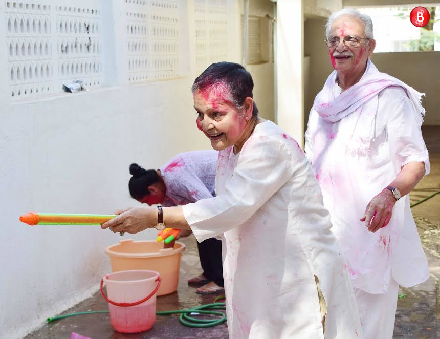 On the occasion of Holi, yesteryear actress Rakhee indulged in some fun colour-splashing with estranged husband Gulzar. The duo celebrated Holi in the quintessential manner of holding a pichkari and splashing coloured water. (Also Read: When Priyanka Chopra played Holi on international television)