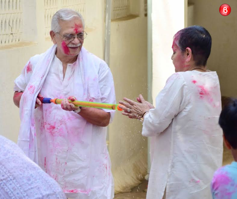 Rakhee and Gulzar play Holi with coloured water