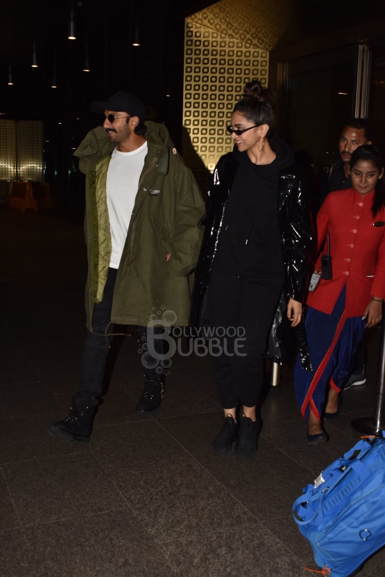 They are one of the stylish couples of B-town. Ranveer was seen in black and white casuals paired with a green oversized coat, a cap and a pair of sunglasses while Deepika wore black from head-to-toe. She tied her hair in a high knot.