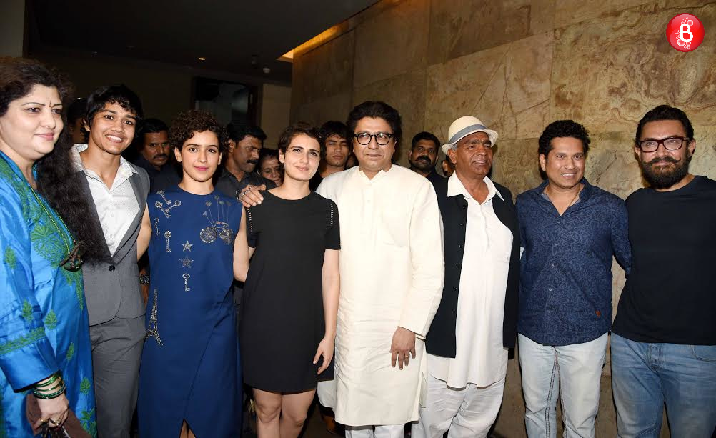 Sharmila Thackeray, Babita Kumari, Sanya Malhotra, Fatima Sana Shaikh, Raj Thackeray, Mahavir Singh Phogat, Sachin Tendulkar and Aamir Khan at Dangal screening!