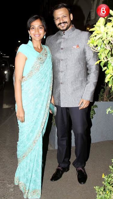 Vivek Oberoi and Priyanka Alva Oberoi pose for the camera together at Rana Kapoor’s daughter’s wedding reception.