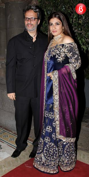 Raveena Tandon and Anil Thadani pose for the camera together at Rana Kapoor’s daughter’s wedding reception.