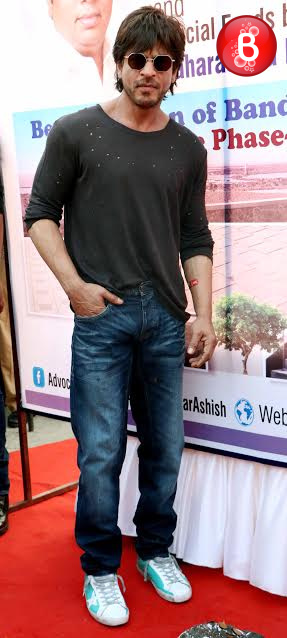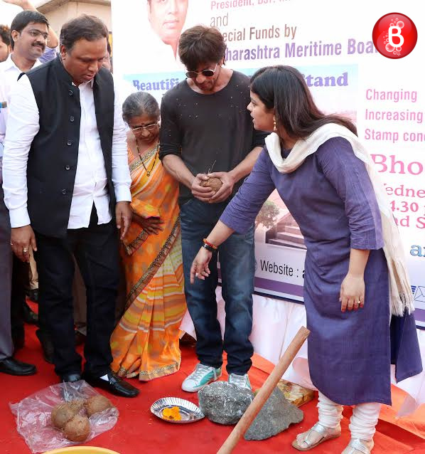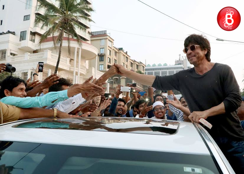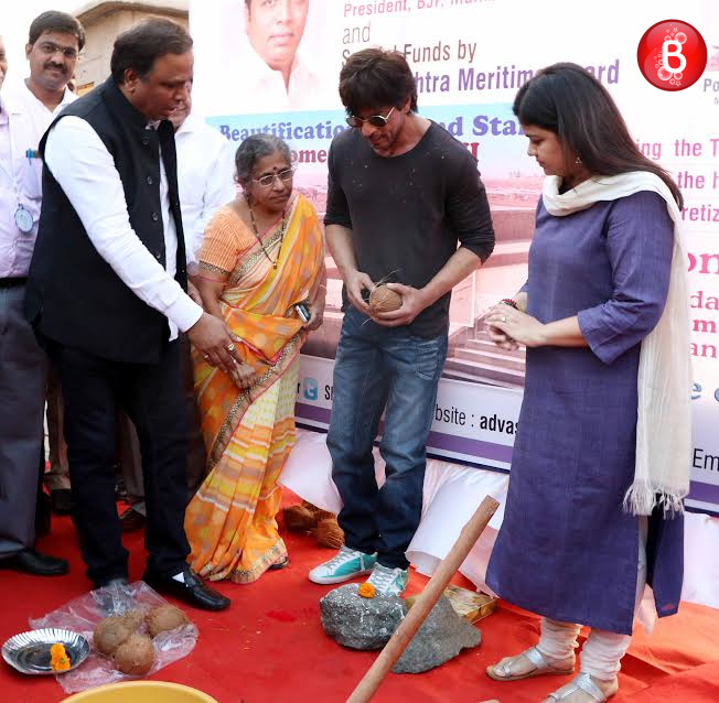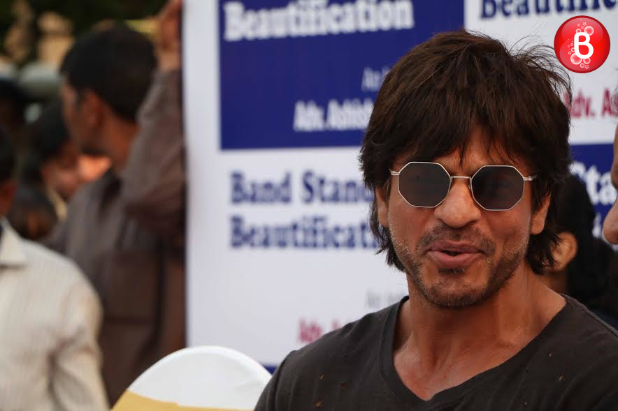 Shah Rukh Khan is back to India after three months of shooting for director Imtiaz Ali’s next directorial project. The actor made his way to attend the Beautification of Bandstand promenade Phase 2 organised by MLA Ashish Shelar on Wednesday. SRK was invited here as the chief guest and he even did the Bhumi poojan himself by breaking a coconut which is a ritual. This was followed by him addressing his fans on whose insistence SRK even mouthed the famous dialogue from his upcoming movie ‘Raees’. Our shutterbugs have snapped some amazing pictures from this event and here we bring those to you.
