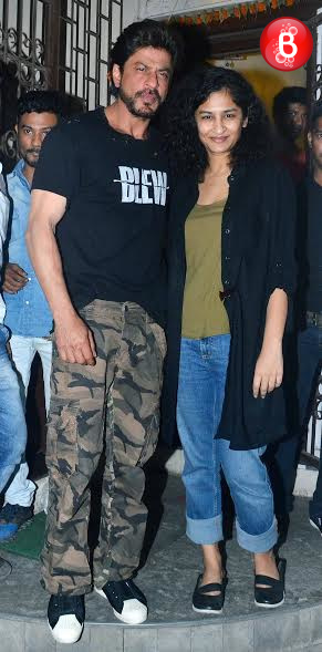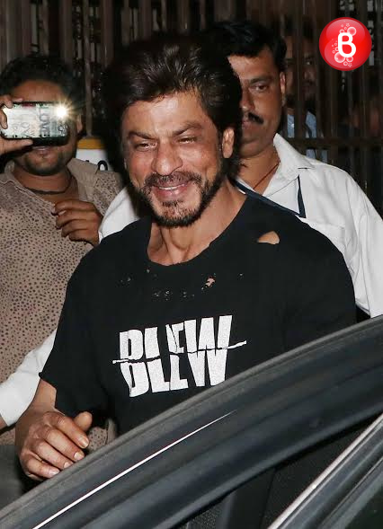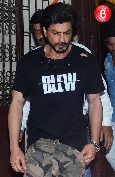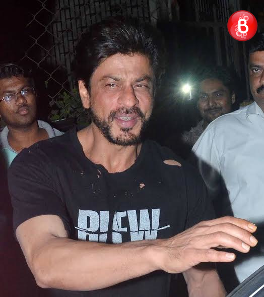 Bollywood’s King Khan aka actor Shah Rukh Khan just slays it when it comes to his looks and casual fashion statement. The actor who is gearing up for the release of his upcoming movie ‘Dear Zindagi’, was spotted by our shutterbugs on Tuesday night. Shah Rukh was spotted wearing a tattered tee which had ‘BLEW’ written over it with cargo pants. Apart from him, his ‘Dear Zindagi’ director Gauri Shinde was also snapped here outside the recording studio of music composer-singer Shankar Mahadevan. Both of them were all smiles for the paparazzi. And here we bring those pictures to you.