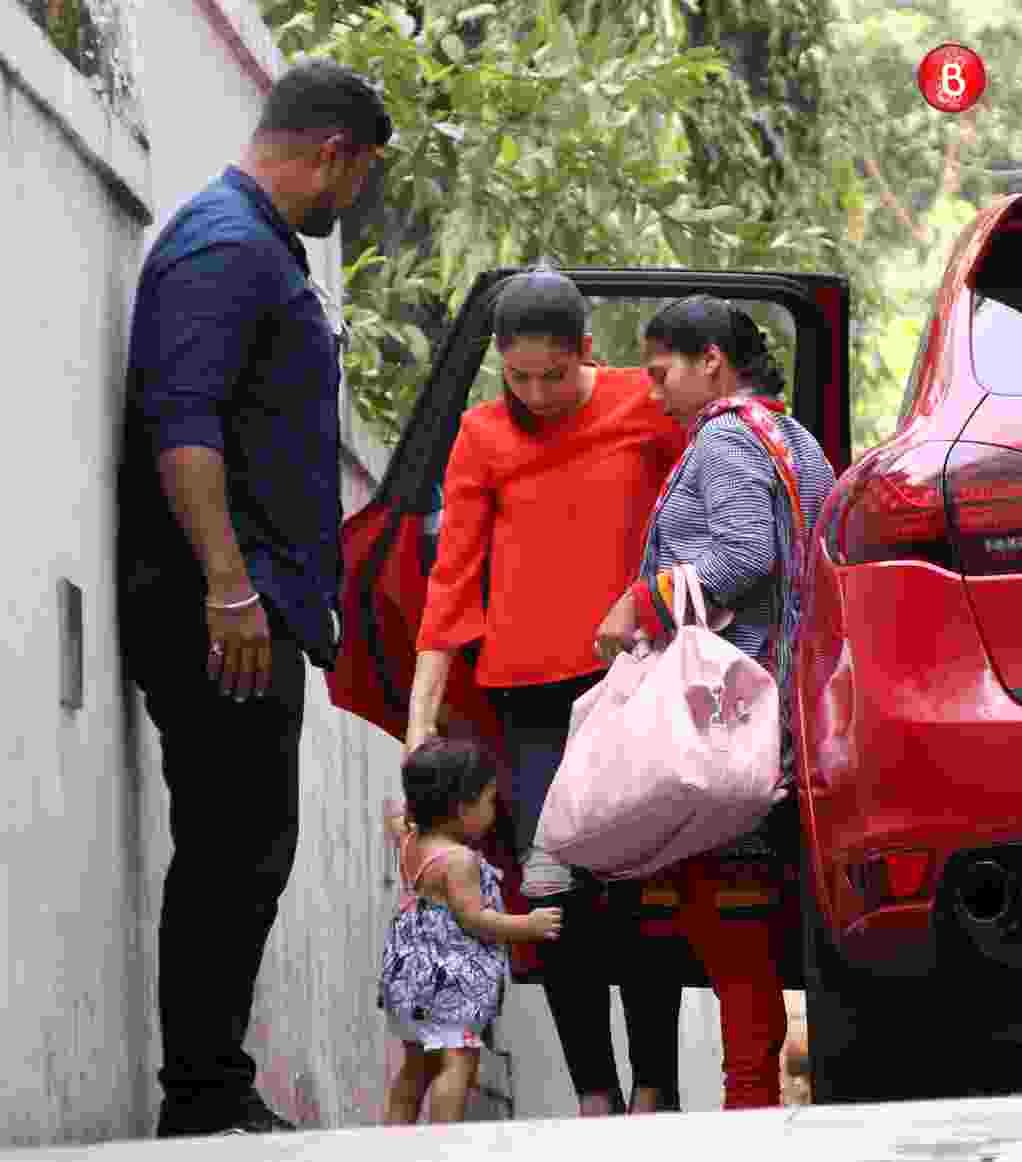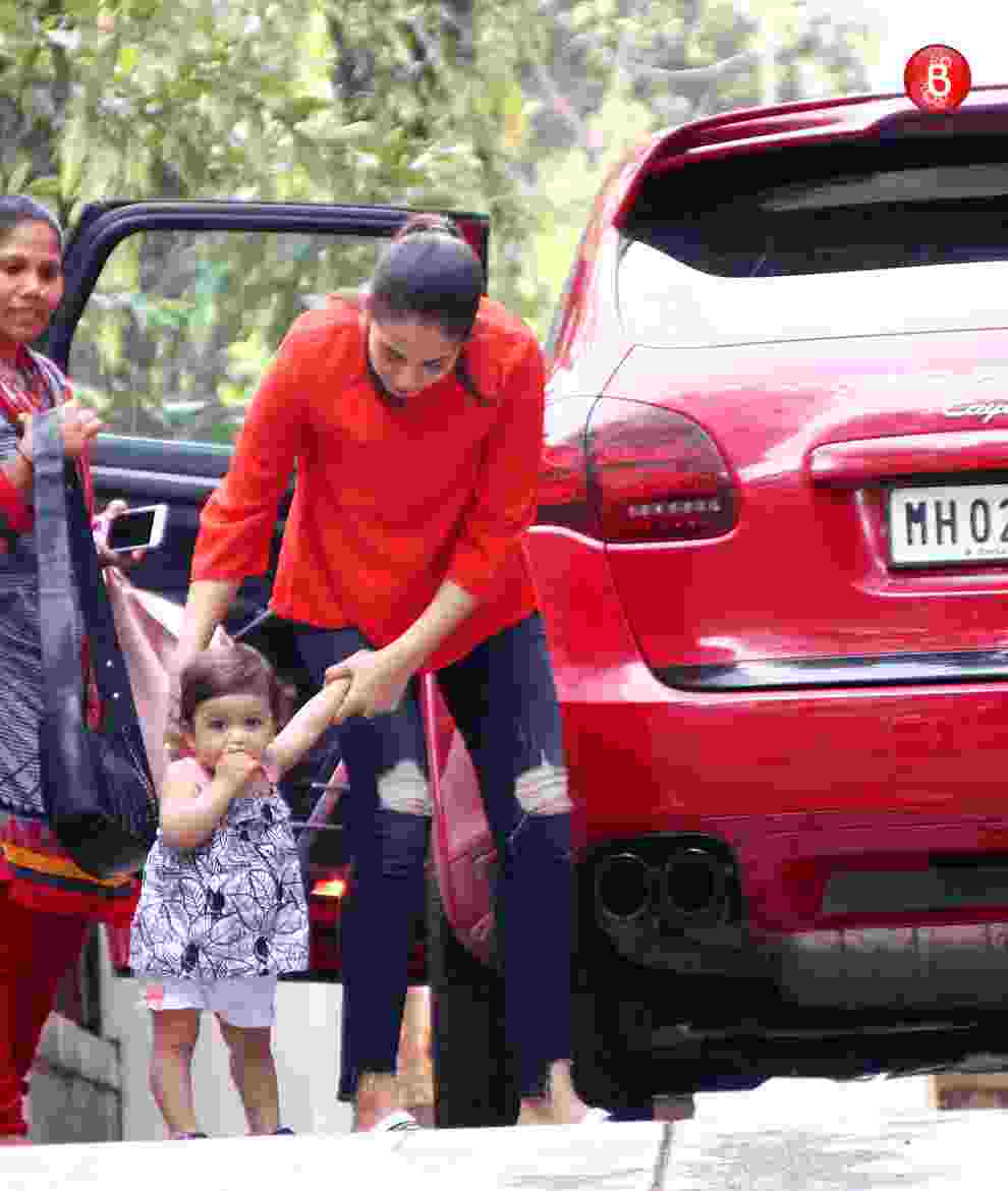 Shahid Kapoor and Mira Rajput’s bundle of joy, Misha, is just turning cuter with each passing day. We often see her pictures on internet when she gets spotted with her parents and we simply can’t get enough of her cuteness. Once again, our shutterbugs managed to click this little wonder and that too when she was taking her baby steps. Mira and Misha were on an outing when our cameras managed to click them while getting out of their car. What caught our attention was that instead of being tucked in her mother’s arms, Misha was seen walking and taking baby steps, holding her mother’s hand. As always, she looked cute beyond imagination. (Also Read: Shahid Kapoor and Mira Kapoor’s plans for baby Misha’s first birthday revealed!)