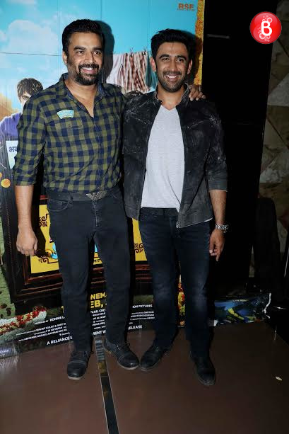R. Madhavan and Amit Sadh pose together at the special screening of 'Running Shaadi'.