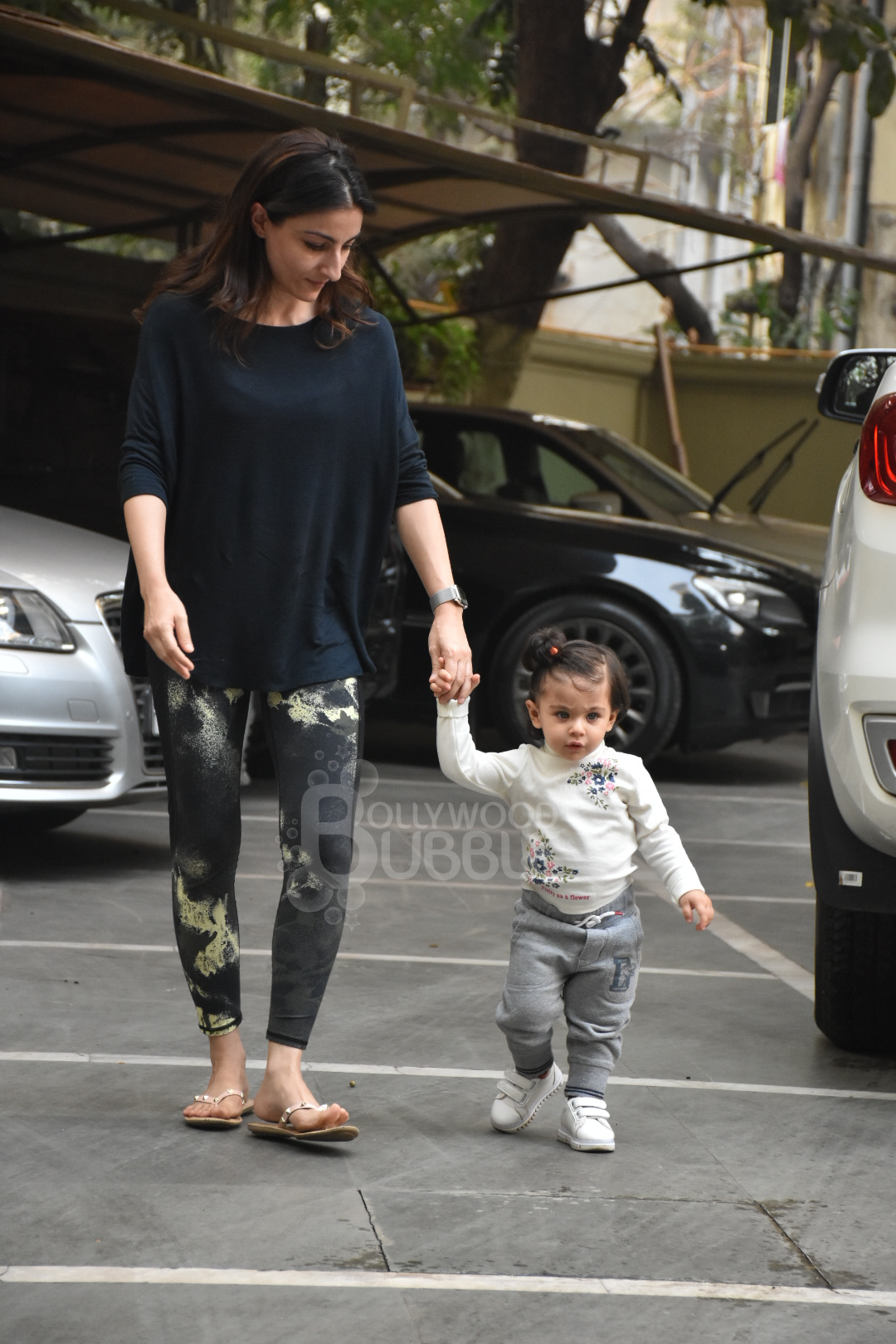 Inaaya looked cute in the top-pony. She was in an off-white top and a pair of grey pants.