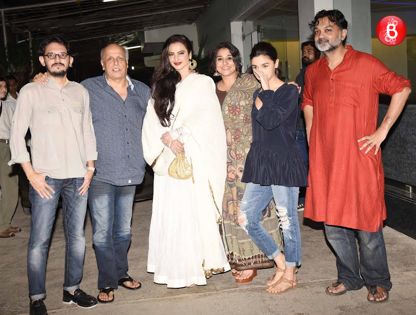 Lead actress Vidya Balan, director Srijit Mukherji, producers Mahesh Bhatt, Mukesh Bhatt and a number of guests were spotted at the screening. But the one to steal our attention was the ever-gorgeous actress Rekha! The veteran dropped in and exchanged warm wishes with everyone. Check out the pictures!