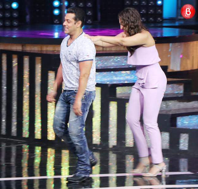 Ready to dance! Salman Khan and Sonakshi Sinha are snapped on the sets of ‘Nach Baliye 8’.
