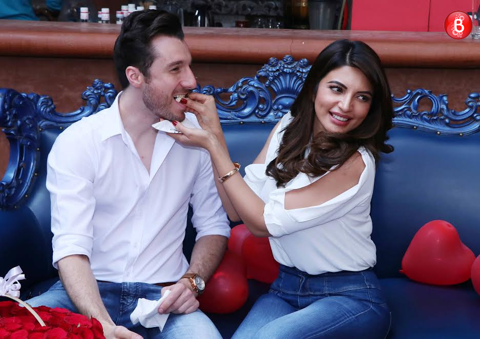 Valentine’s Day is just around the corner, and everyone is looking forward to celebrating the day with his or her loved one, even our Bollywood celebs. On Thursday, actress Shama Sikander celebrated this special occasion (a few days earlier) with her boyfriend James Milliron. The ‘Maaya’ actress believes that every day is a Valentine’s Day if you are really in love with your partner. The two even twinned as far as outfits are concerned, wearing the evergreen fashion hit, white shirt with blue denims, totally winning our hearts. They cut the cake and James gave a red rose to Shama. How romantic are their Valentine’s Day celebrations, and are bound to set love goals.