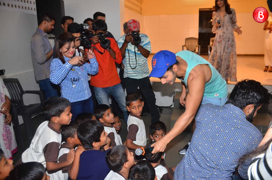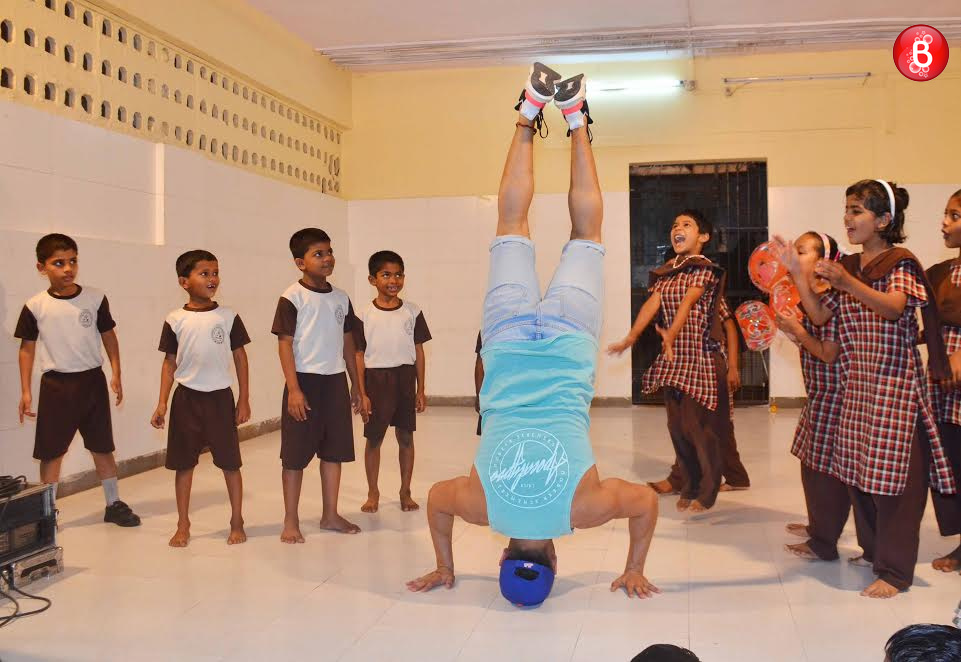 Varun Dhawan does a head stand for his little fans during his visit to orphanage.