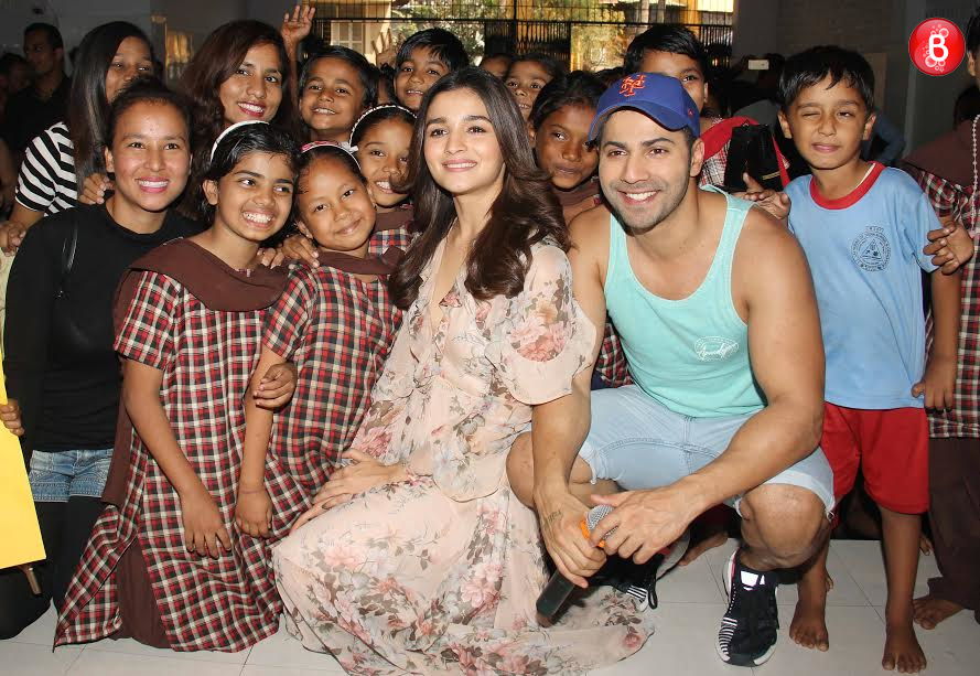 Varun Dhawan and Alia Bhatt are snapped with the orphanage children during their visit.