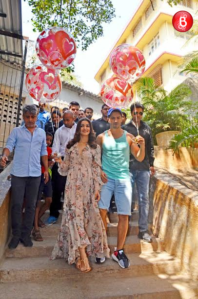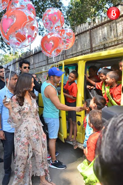Varun Dhawan and Alia Bhatt are all ready to meet the orphanage kids with some balloons for them.