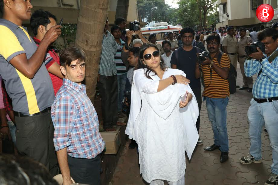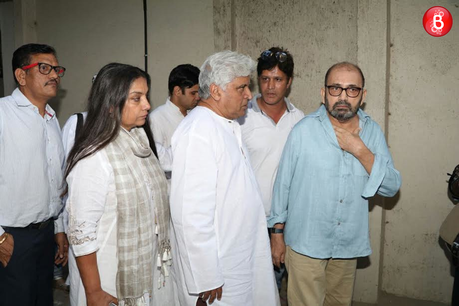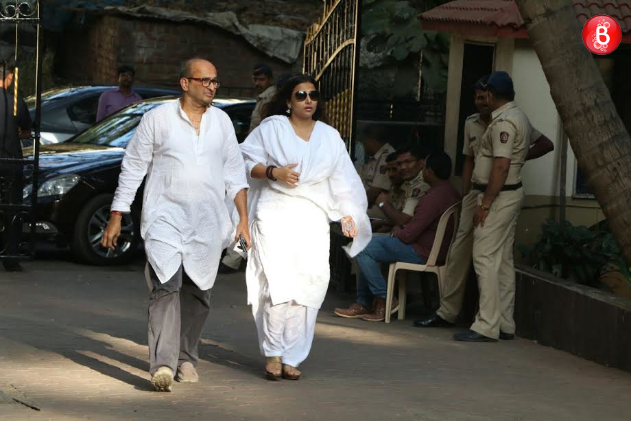 Bollywood is bereaved at the sudden demise of veteran actor Om Puri due to cardiac arrest today morning. As one of his co-actors Shabana Azmi had conveyed through her Twitter handle that the funeral will take place in the evening, many of his colleagues and B-Town celebs were seen arriving to his residence to offer their condolences. Veteran actor Shashi Kapoor, Vidya Balan, Javed Akhtar with wife Shabana Azmi, Prakash Jha, Kabir Khan, Shyam Benegal were amongst them. Even, Om Puri’s ex-wife Nandita Puri was spotted and was amongst the first ones to arrive here.