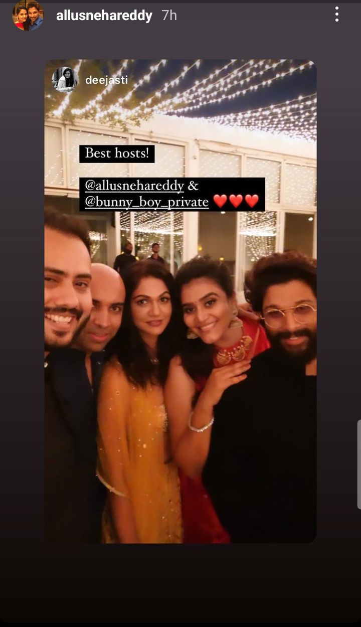 Allu Arjun’s wife Sneha shared a few photos on her Instagram stories.