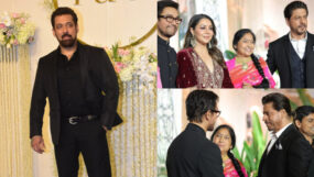 Ira Khan and Nupur Shikhare wedding reception: Salman Khan oozes swag in an all-black look; Shah Rukh Khan and Gauri Khan pose with Aamir Khan