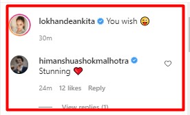 Moments within Ankita posted the above picture, her fans and followers flooded her post with heart and fire emojis. Actor Himanshu Malhotra commented, “Stunning” on the picture. Similarly, ‘hot and sexy’ were some of the common adjectives showered on Ankita’s post.