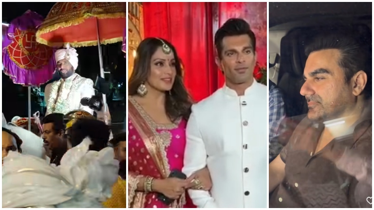 Bipasha Basu and Karan Singh Grover dressed to impress. The Alone actor wore a stunning pink anarkali suit with matching jewellery. On the other hand, Karan wore a white bandhgala sherwani for the wedding.
