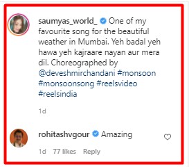 In the video posted by the gorgeous actress, Saumya is seen wearing a beautiful anarkali dress. Sitting on the floor, the actress is seen matching her classical dance moves to the poignant lyrics of the song. Saumya captioned her video as, “One of my favourite song for the beautiful weather in Mumbai. Yeh badal yeh hawa yeh kajraare nayan aur mera dil. Choreographed by @deveshmirchandani #monsoon #monsoonsong #reelsvideo #reelsindia(sic).”