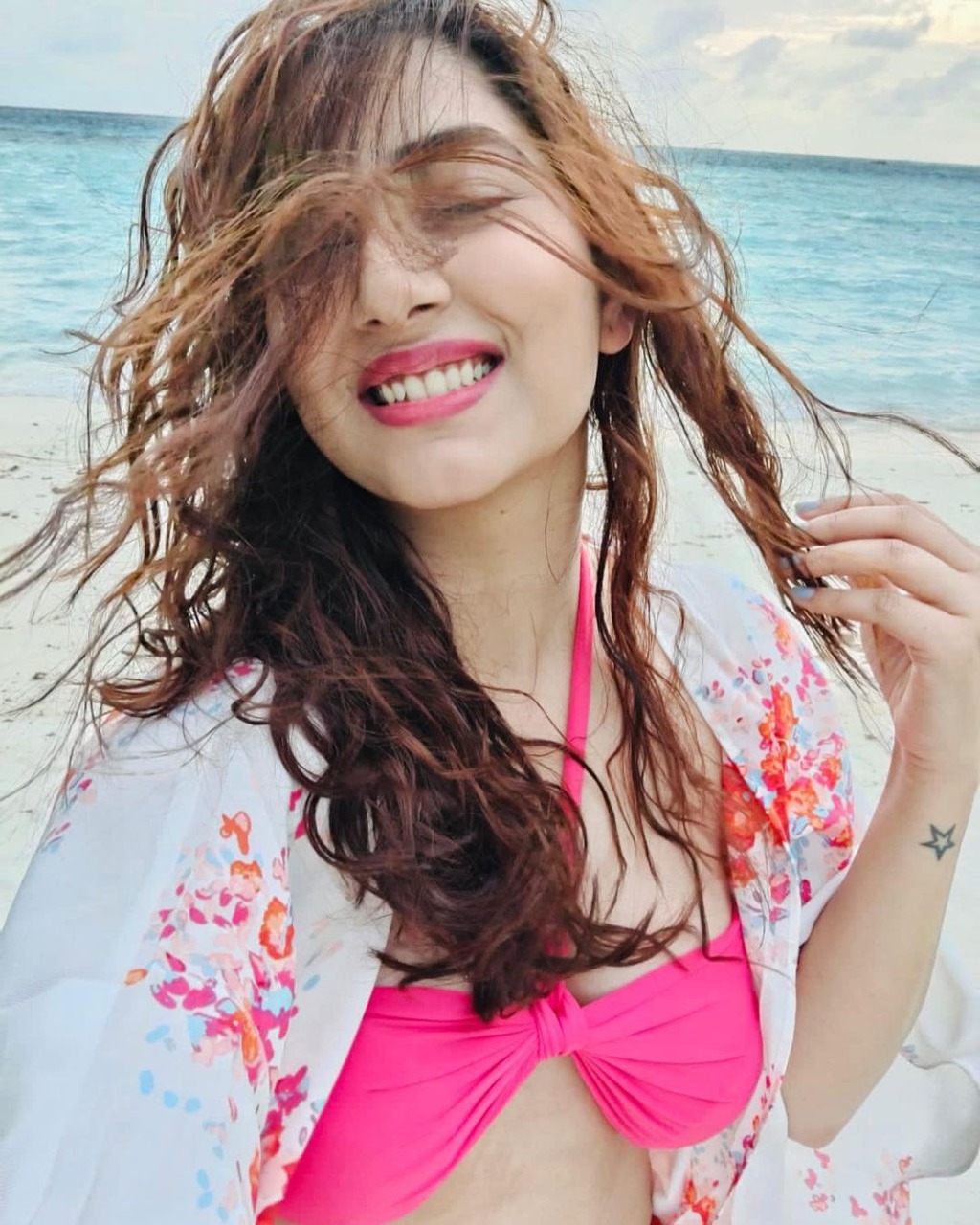 In the pictures, the Bade Achhe Lagte Hain 2 actress is wearing a sexy pink bikini with a white pullover. She has left her long tresses down and flaunts a million-dollar smile. The picture shows Disha posing for a sexy picture. In the string, the next one shows Rahul and Disha posing for a selfie. Parmar is clicked giving her beloved husband a peck on his cheek. Rahul poses shirtless while taking a selfie. Disha Parmar shared more interesting and fascinating pictures in her Instagram post. She looked extremely happy.