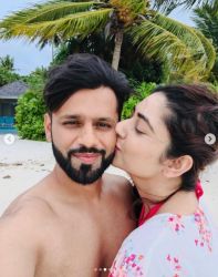 Disha Parmar and Rahul Vaidya jetted off to the Maldives recently. The couple rang Rahul’s birthday in the beautiful island country. Since then, Disha Parmar has been sharing pictures and videos on her Instagram. She even took to her Instagram to wish Rahul on his Birthday. The actress shared mushy photos of them, from their exotic vacay. Just recently, Parmar made a new post on her social media account. She posted a string of pictures from the Maldives. Rahul Vaidya also makes a candid appearance in a cute selfie.