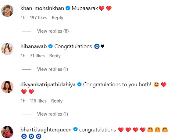 Fans and friends congratulated them. Divyanka Tripathi dropped a comment saying, “Congratulations to you both! (red heart emojis).” Devoleena Bhattacharjee commented, “Congratulations Gautam & Pankhuri.” Aamir Ali, Bharti Singh, and Amit Tandon among others showered them with love.