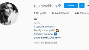 Hina Khan is reeling in pain, as she shared a warm bond with her father. His demise has left a void in their lives that never be filled. Now, the actress has proved her love for her late father and touched everyone’s heart. Hina Khan has dedicated her social media bio to her late father. Yes, you read that right. She has changed her Instagram bio after her father’s demise, and proved that she will forever be ‘Daddy’s girl.’