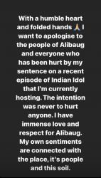 “With a humble heart and folded hands, I want to apologise to the people of Alibaug and everyone who has been hurt by my sentence on a recent episode of Indian Idol that I’m currently hosting. The intention was never to hurt anyone. I have immense love and respect for Alibaug. My own sentiments are connected with the place, its people and this soil, Aditya wrote in his public apology.