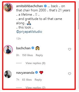 Reacting to Big B’s post, his son Abhishek Bachchan dropped a raising hands emoji and granddaughter Navya Naveli Nanda posted a red heart emoji. Fans also lauded the veteran actor with comments such as ‘a living legend you are sir’, ‘best wishes sirji for KBC13. You rock’ and ‘awesome sir’.