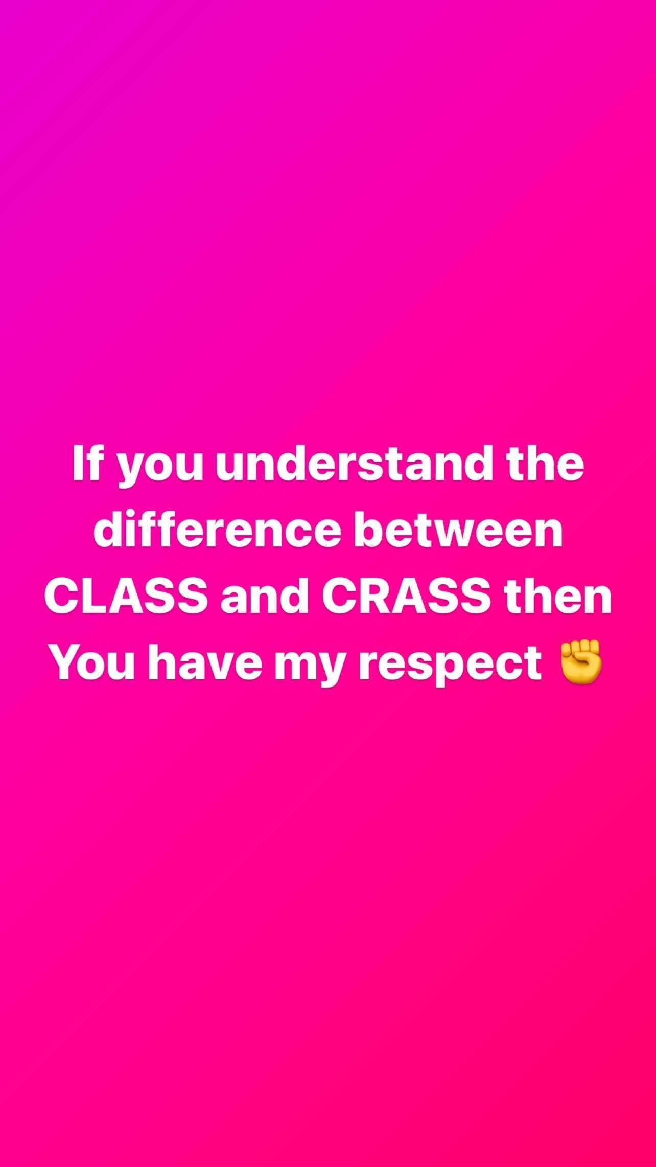 In another statement, she wrote, “If you understand the different between class and crass then you have my respect.”